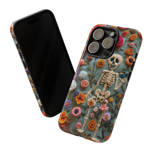 Spooky Floral Skeleton Phone Case – Unique Artistic Design for iPhone, Samsung, Google Pixel