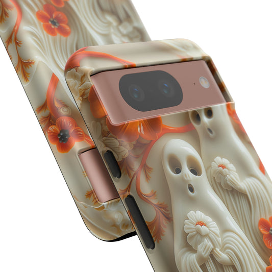 Ghostly Floral Phone Case - Spooky Halloween Design with Orange Flowers for iPhone & Android - Cute Ghost Phone Cover