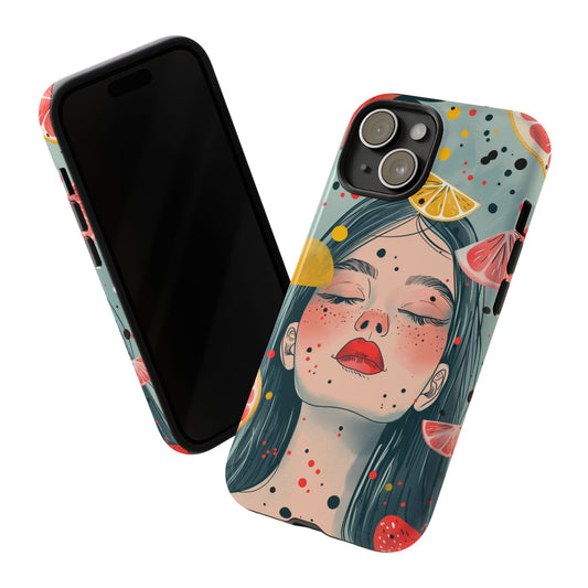 Artistic Boho Fruit Lady Phone Case – Vibrant Modern Collage Design for iPhone, Samsung, Google Pixel Tough Case
