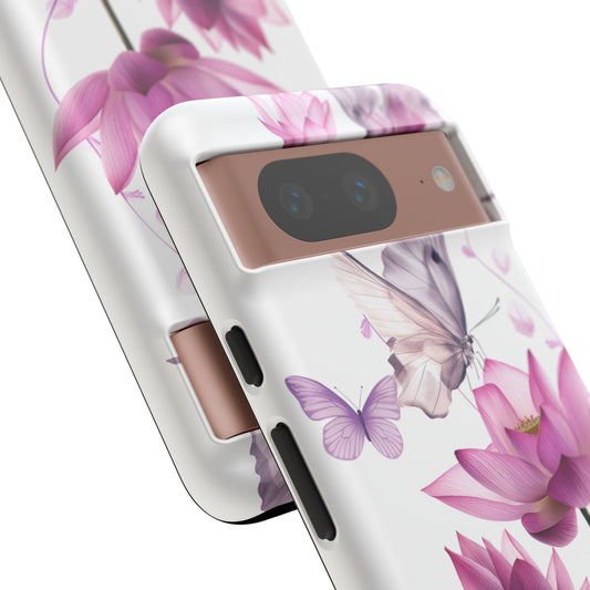 Elegant Lotus and Butterfly Phone Case – Delicate Floral Design for iPhone, Samsung, Google Pixel