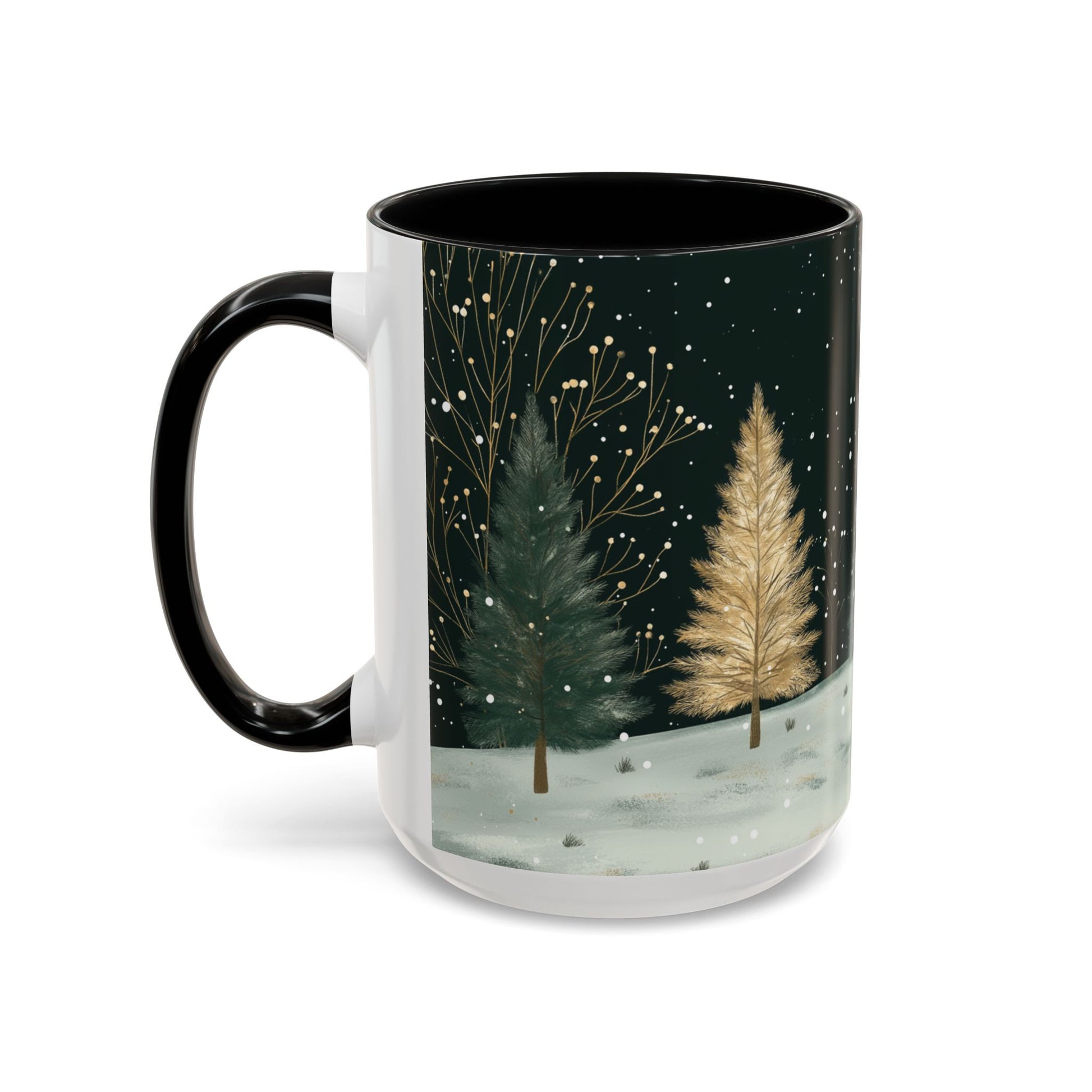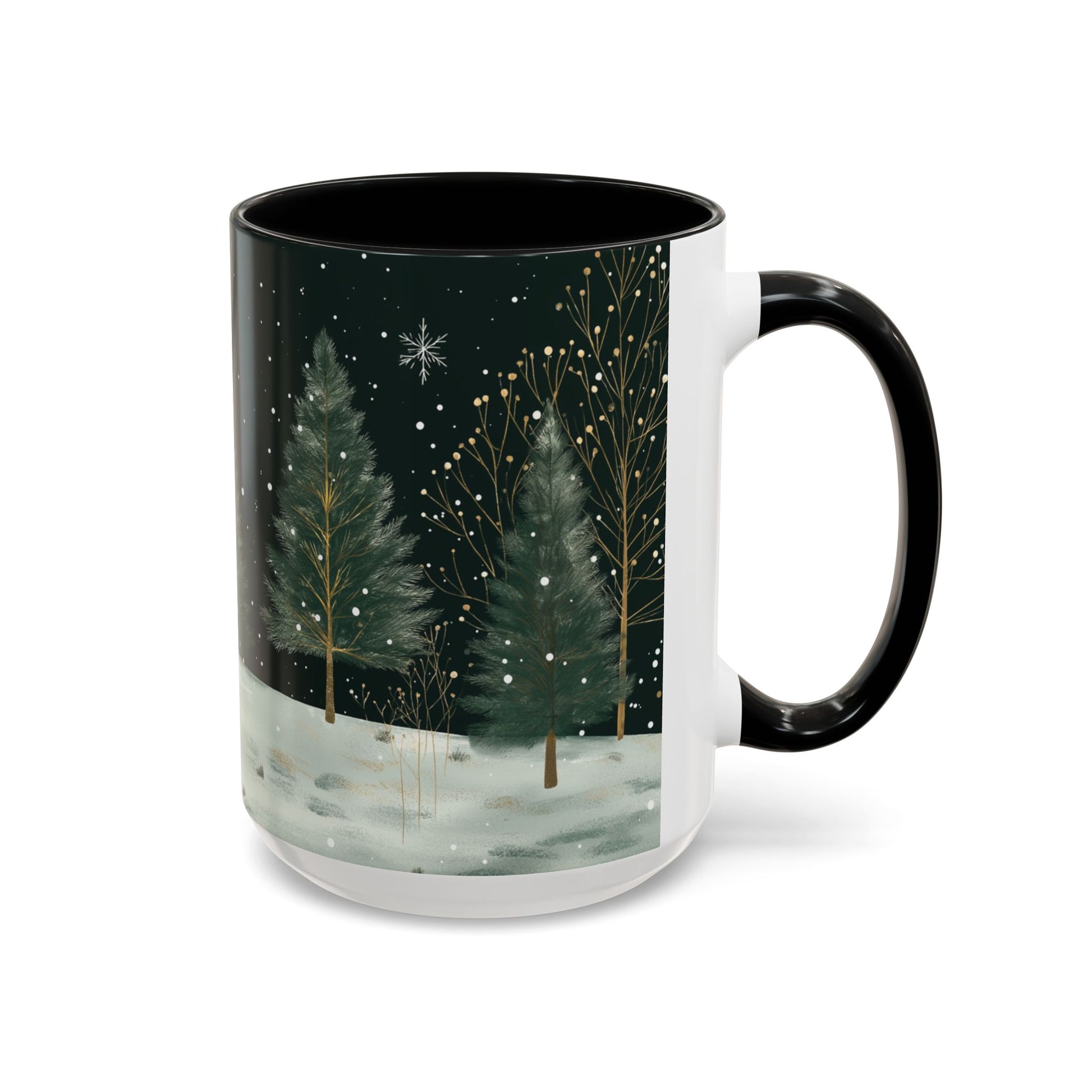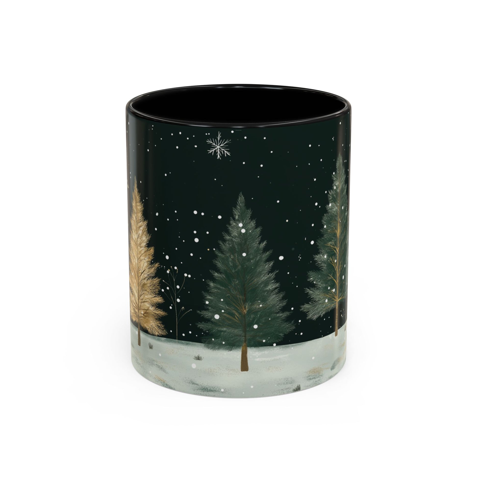 Snowy Pine Forest Mug, Cozy Snowflake Winter Coffee Mug, 11oz Ceramic Christmas Forest Tea Cup, Snow Tree Mug, Holiday Mug, Xmas Gift